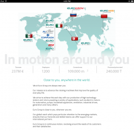 L'applicazione ha lo scopo di presentare Eurogroup e le diverse sedi nel mondo ai potenziali clienti e fornitori.
