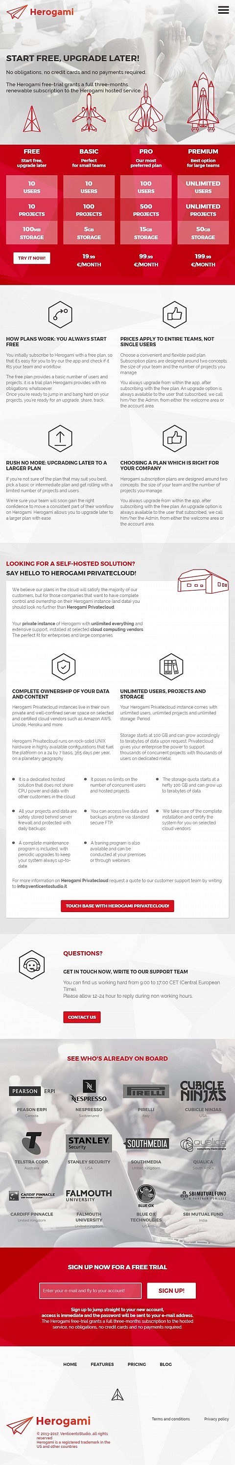 Il leitmotiv del sito rimane quello della carta e dell'origami: le texture di sfondo ricordano la carta piegata e le declinazioni dei piani di pricing sono rappresentate dall'origami di un aereo sempre più potente.