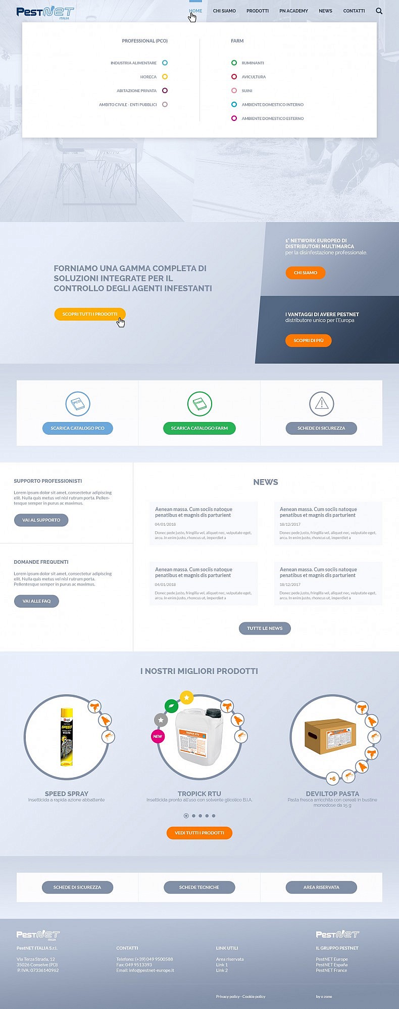 Per Pestnet è stato creato un sito responsive in Wordpress con tema custom pensato e sviluppato su misura.